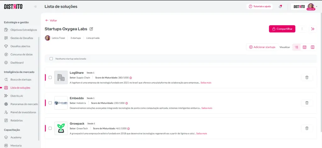 A Oxygea desembolsou R$ 4,5 milhões para investir nas startups mapeadas na base do Distrito: LogShare, Embeddo e GrowPack, que foram participantes do primeiro batch do Oxygea Labs, programa de investimento com foco em sustentabilidade e inovação.